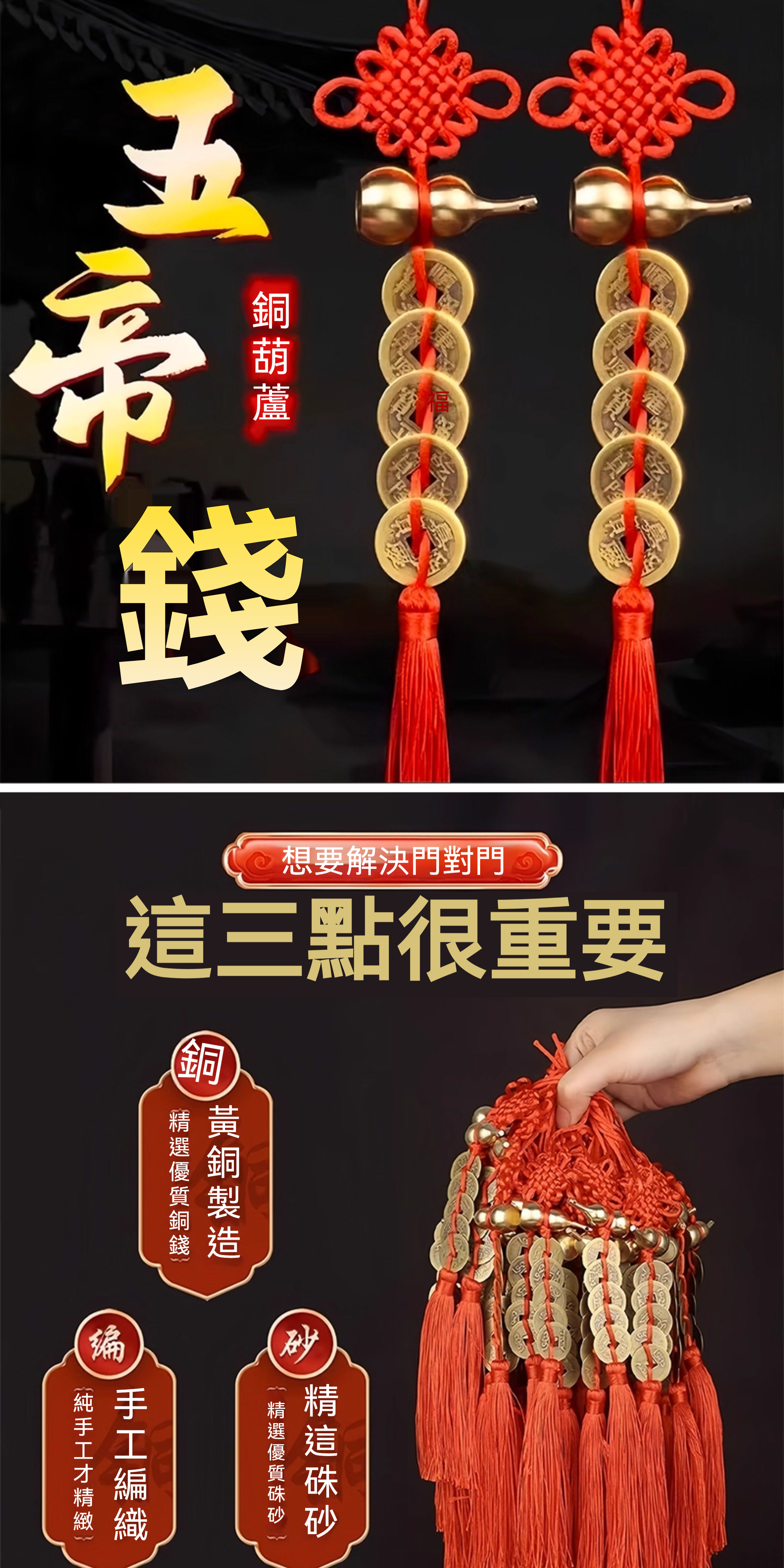 【🔥🔥限時特惠 買四贈四】五帝錢寓意❤️財❤️壽❤️福❤️安❤️康💛傳承千年的吉祥寓意💛精品黃銅葫蘆✨喜氣滿門🥰年年好運✨✅適合玄關✅大門✅臥室✅車內掛飾🎯